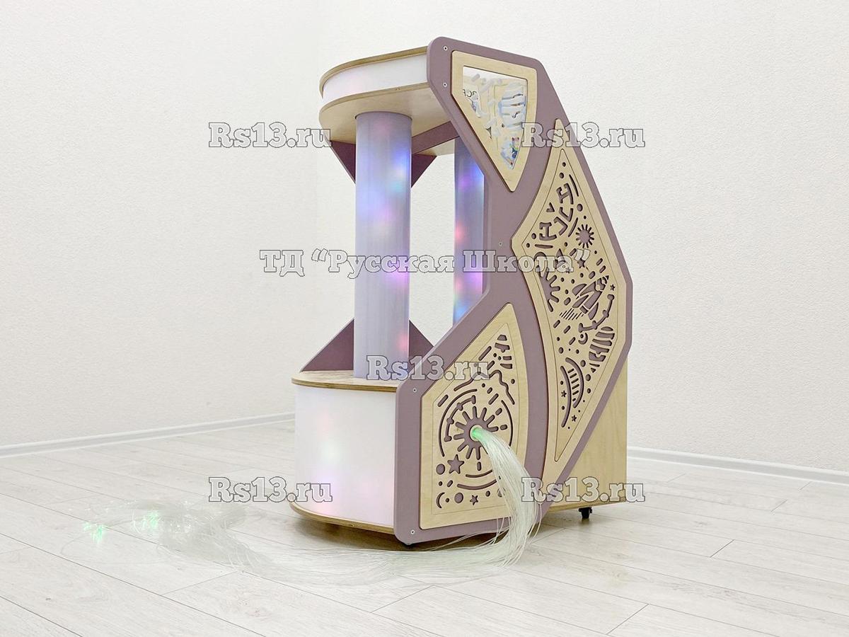 Универсальное оборудование для оснащения сенсорных комнат и кабинетов детских психологов. Мобильный комплекс включает: мультимедийную сенсорную панель с профессиональным ПО «Профиль психолога АЛМА», световую колонну, фонтан из фибероптического волокна, сенсорные панели, нейротренажёры, проектор звёздного неба и встроенную музыкальную систему.