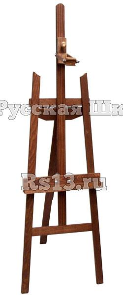 Небольшой домашний мольберт-тренога классического дизайна с лотком и бегунком, позволяющим менять наклон холста.
