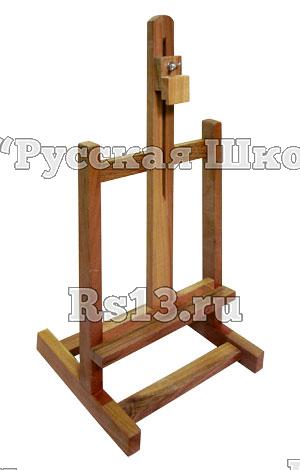 Небольшой мольберт с наклоном верхней рамы и подвижным бегунком. Подходит для миниатюр и экспозиции. Может служить для выставки декоративных тарелок с небольшими дополнениями конструкции. Выполнен из ореха, дуба или других твердых пород дерева.