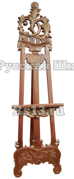 Мольберт выполнен из массива липы по образцам русских резных мотивов ХVIII-ХIX века. Ручная работа. Тонирование с золочением, лак.