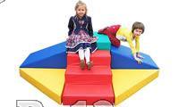 Состоит из 9 элементов различной конфигурации. Верхние детали центрального куба, горок и ступенек усилены фанерой 0,6мм, оклеенной поролоном для безопасного использования. Развивает у детей опорно- двигательный аппарат, фантазию, понятие об устойчивости, объёмно – пространственное и ассоциативное мышление.