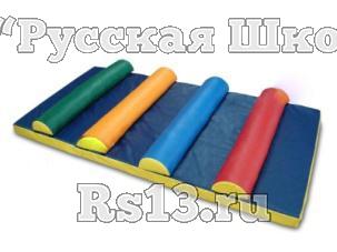 Детский мягкий модуль - Мат с роликами Многофункциональность этого мата позволяет использовать его и для спортивных занятий и для ролевых игр. Кочки, которые крепятся к мату с помощью контактной ленты, представляют собой отдельные мягкие элементы. На них можно сидеть, использовать в качестве конструктора.