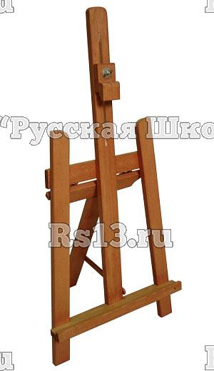 Складной мольберт-тренога с неподвижной полкой и подвижным бегунком. Идеально подходит для экспозиции небольших работ. Может быть выполнен из дуба или других твердых пород дерева.