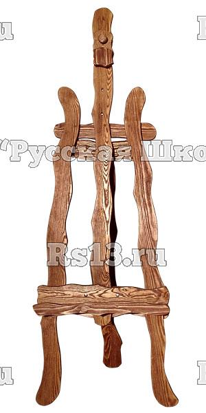 Дизайнерский мольберт-тренога целиком выполненный вручную. Использована технология фактурной обработки дерева. Мольберт покрыт морилкой и лаком с промежуточным осветлением. Пригоден как для выставки, так и для рисования.