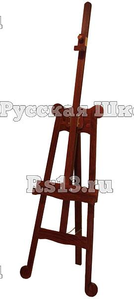 Складной мольберт-тренога с подвижными лотком и бегунком. Изготовлен с применением резных и фрезерованных элементов из бука. Тонирован и покрыт лаком.