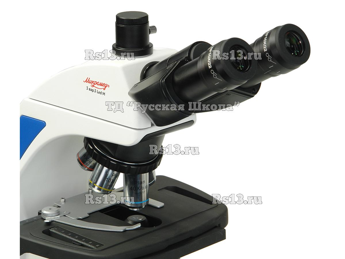 Тринокулярный микроскоп Микромед 3 (вар. 3 LED М) предназначен для исследований препаратов в проходящем свете по методу светлого поля, а также по методу темного поля, поляризации и фазового контраста в комплекте с соответствующими устройствами, поставляемыми по дополнительному заказу.